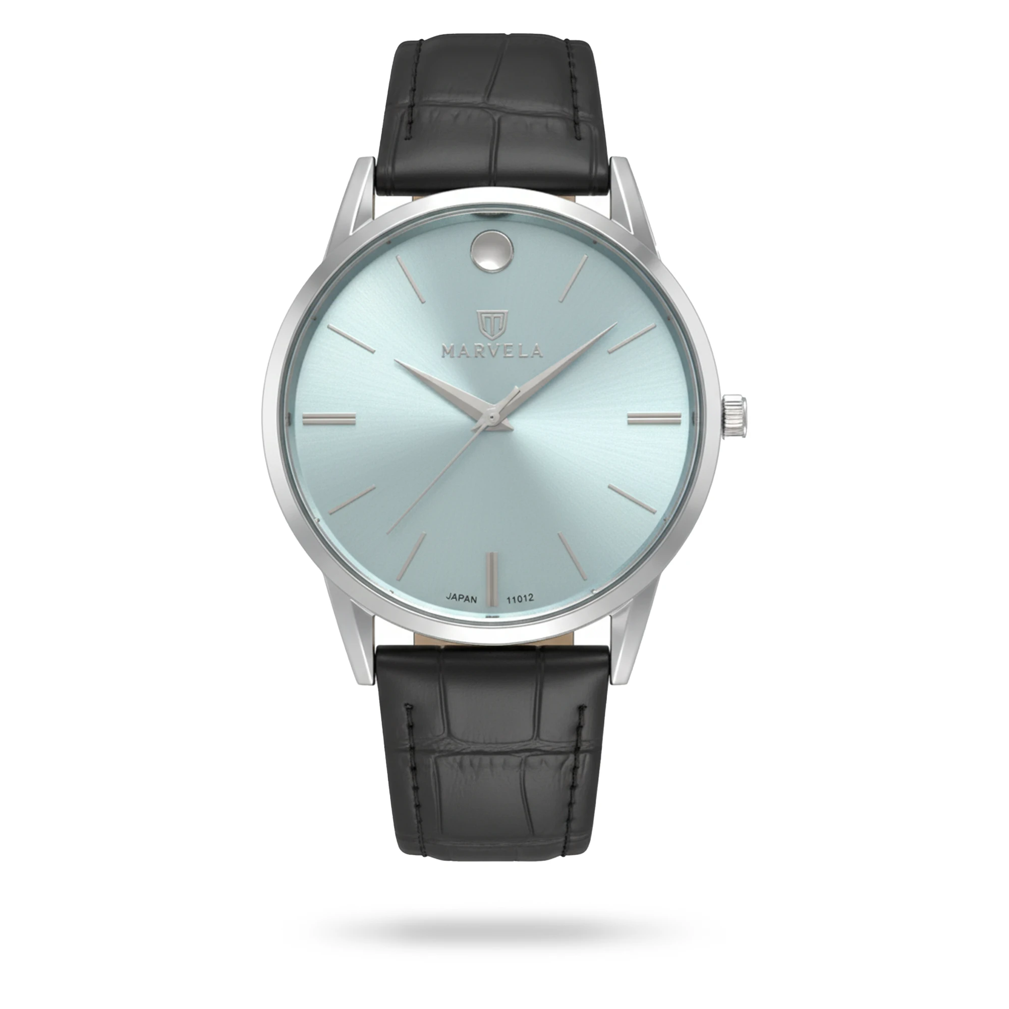Marvela Watch For Men code MR11012G-0004 ,a beautiful wrist watch with 11012 Reference, is a Classic watch which has a Leather Strap, gives you an unique style. This watch has a Steel case, Black strap and a Tiffany dial which has created a beautiful color combination.