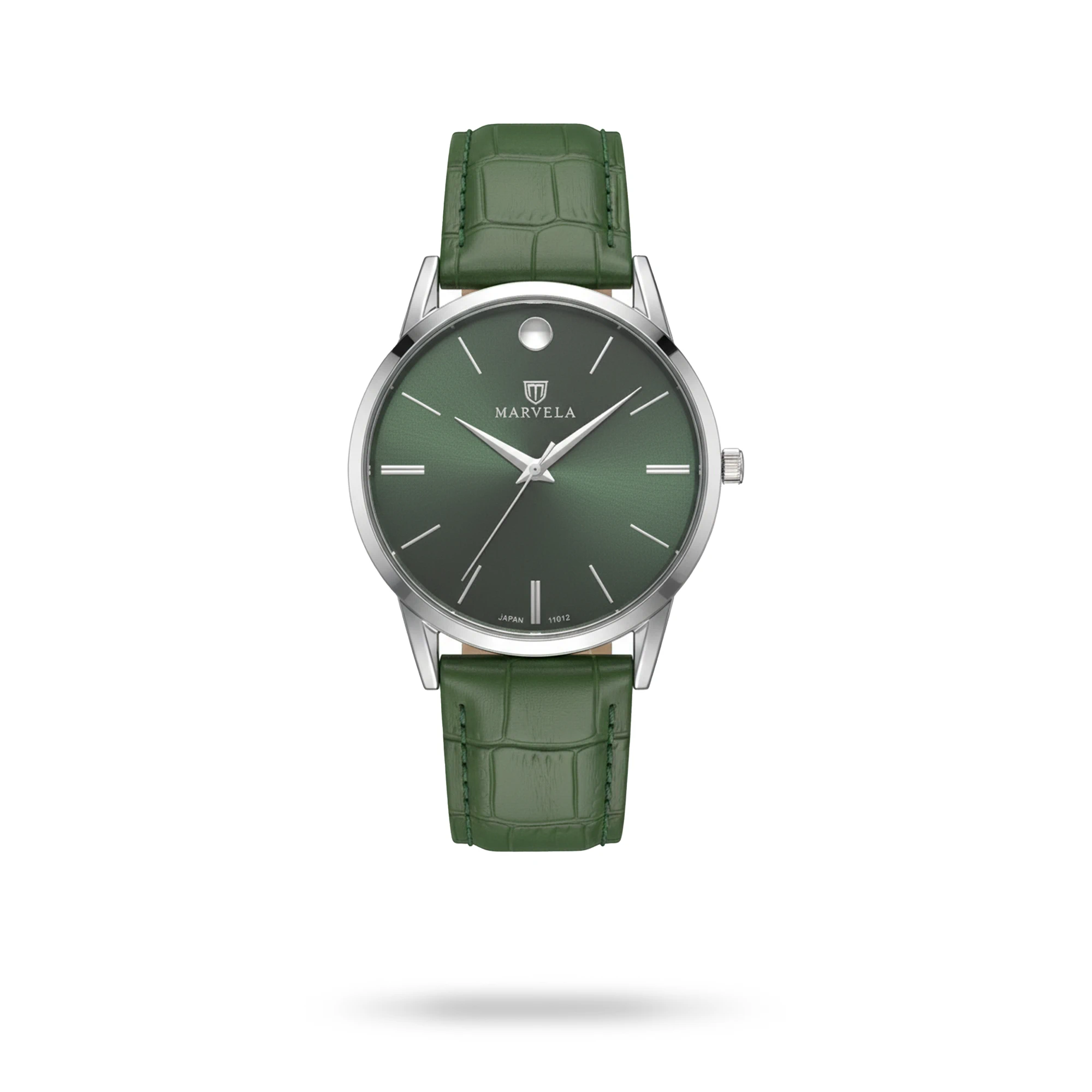 Marvela Watch For Women code MR11012L-0009 ,a beautiful wrist watch with 11012 Reference, is a Classic watch which has a Leather Strap, gives you an unique style. This watch has a Steel case, Green strap and a Green dial which has created a beautiful color combination.