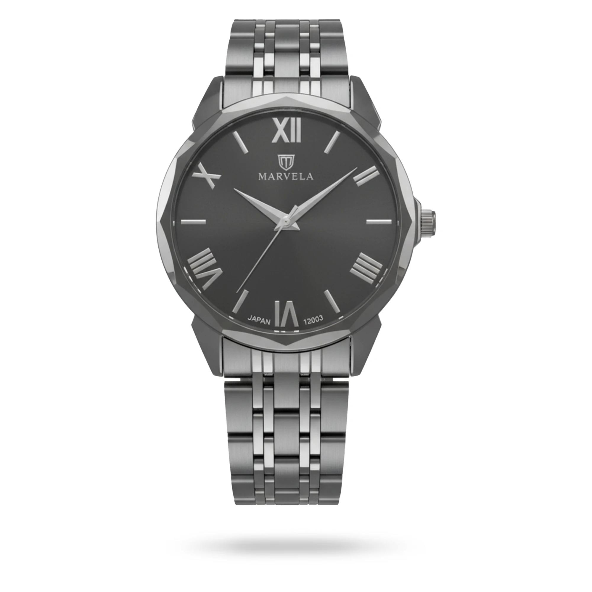 Marvela Watch For Men code MR12003G-0024 ,a beautiful wrist watch with 12003 Reference, is a Classic watch which has a Metallic Strap, gives you an unique style. This watch has a Smoke case, Smoke strap and a Smoke dial which has created a beautiful color combination.