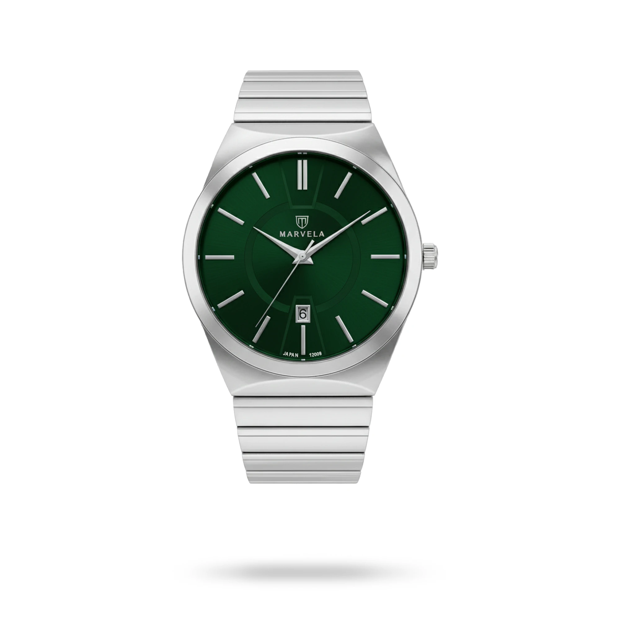 Marvela Watch For Women code MR12008L-0009 ,a beautiful wrist watch with 12008 Reference, is a Classic watch which has a Metallic Strap, gives you an unique style. This watch has a Steel case, Steel strap and a Green dial which has created a beautiful color combination.
