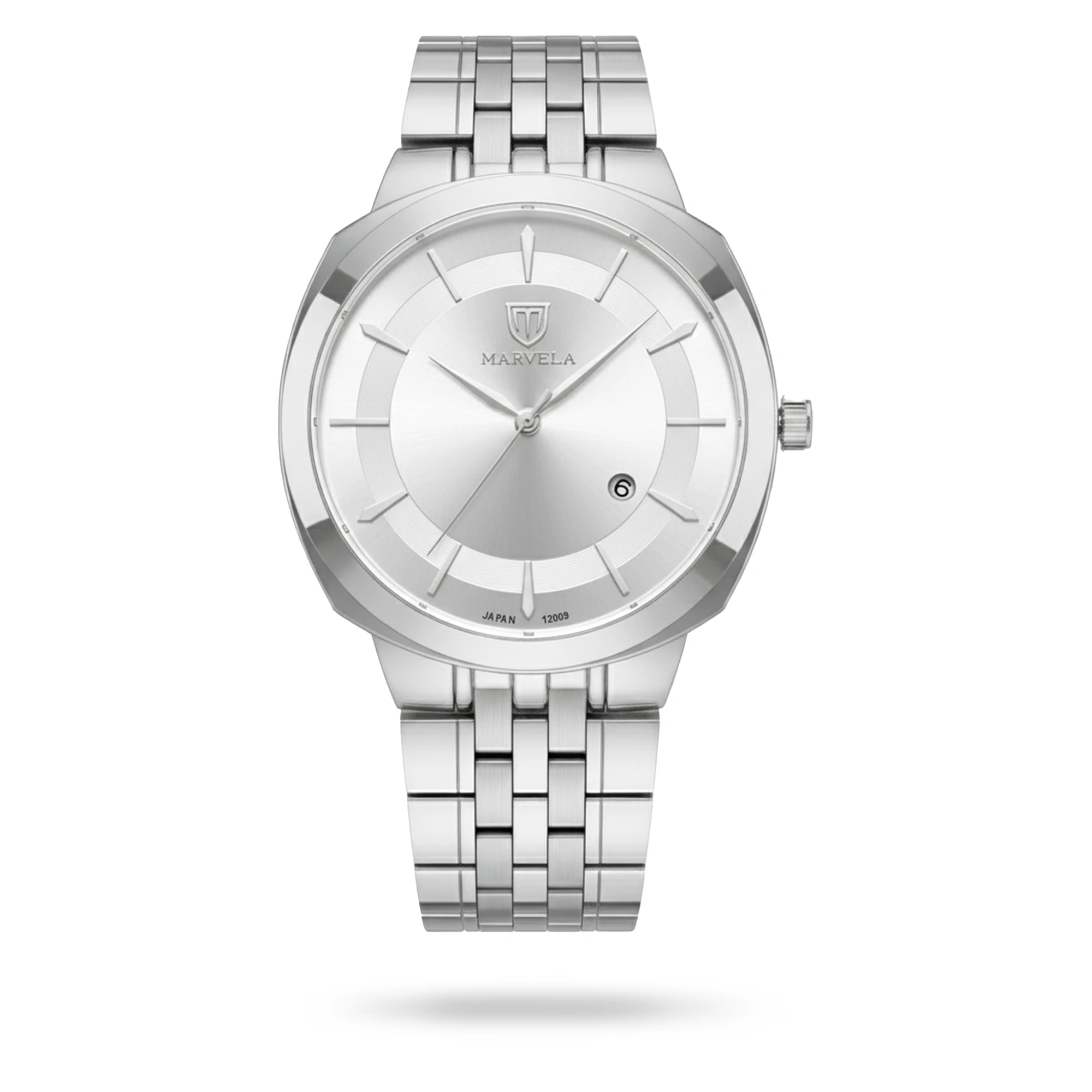 Marvela Watch For Men code MR12009G-0004 ,a beautiful wrist watch with 12009 Reference, is a Classic watch which has a Metallic Strap, gives you an unique style. This watch has a Steel case, Steel strap and a Silver dial which has created a beautiful color combination.