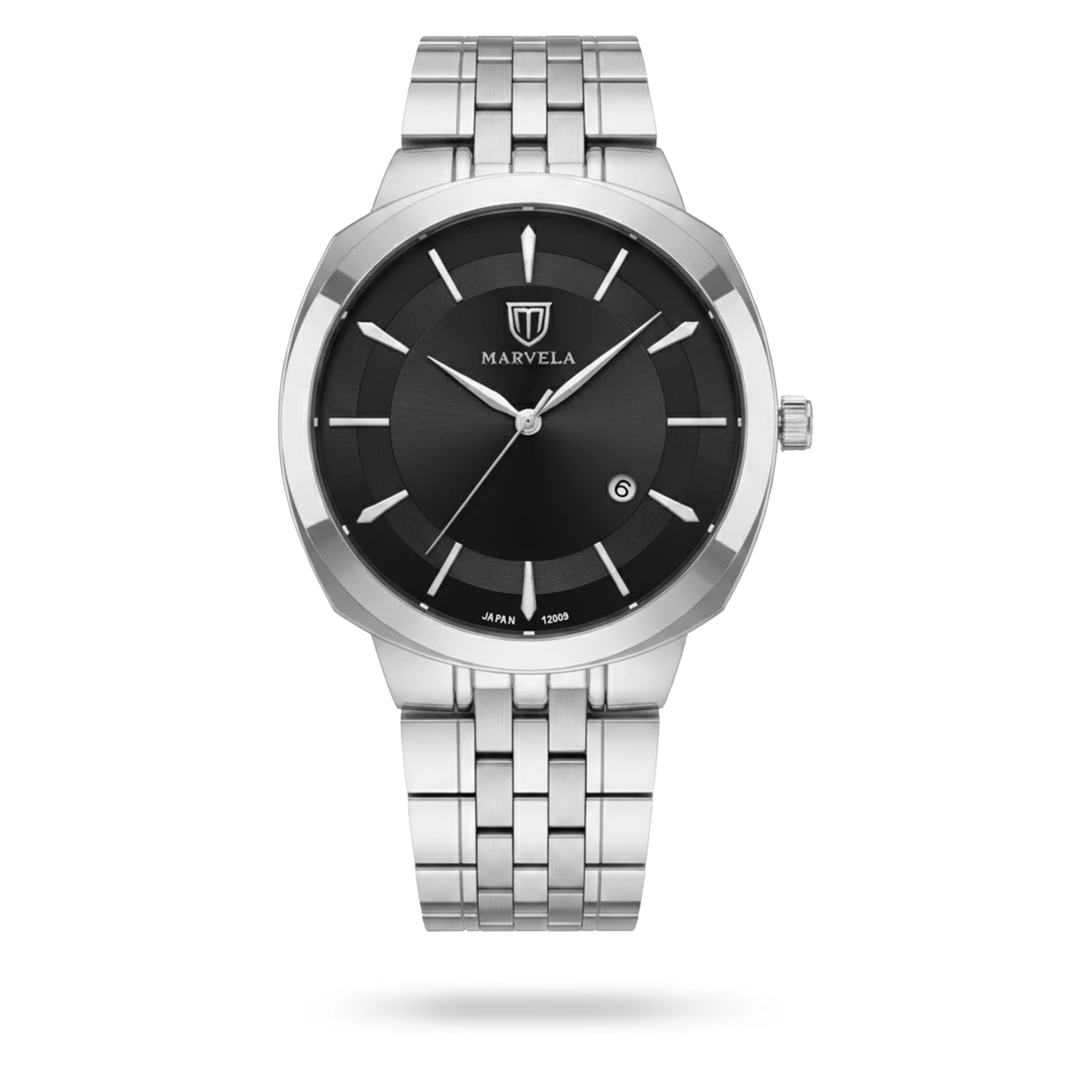 Marvela Watch For Men code MR12009G-0005 ,a beautiful wrist watch with 12009 Reference, is a Classic watch which has a Metallic Strap, gives you an unique style. This watch has a Steel case, Steel strap and a Black dial which has created a beautiful color combination.