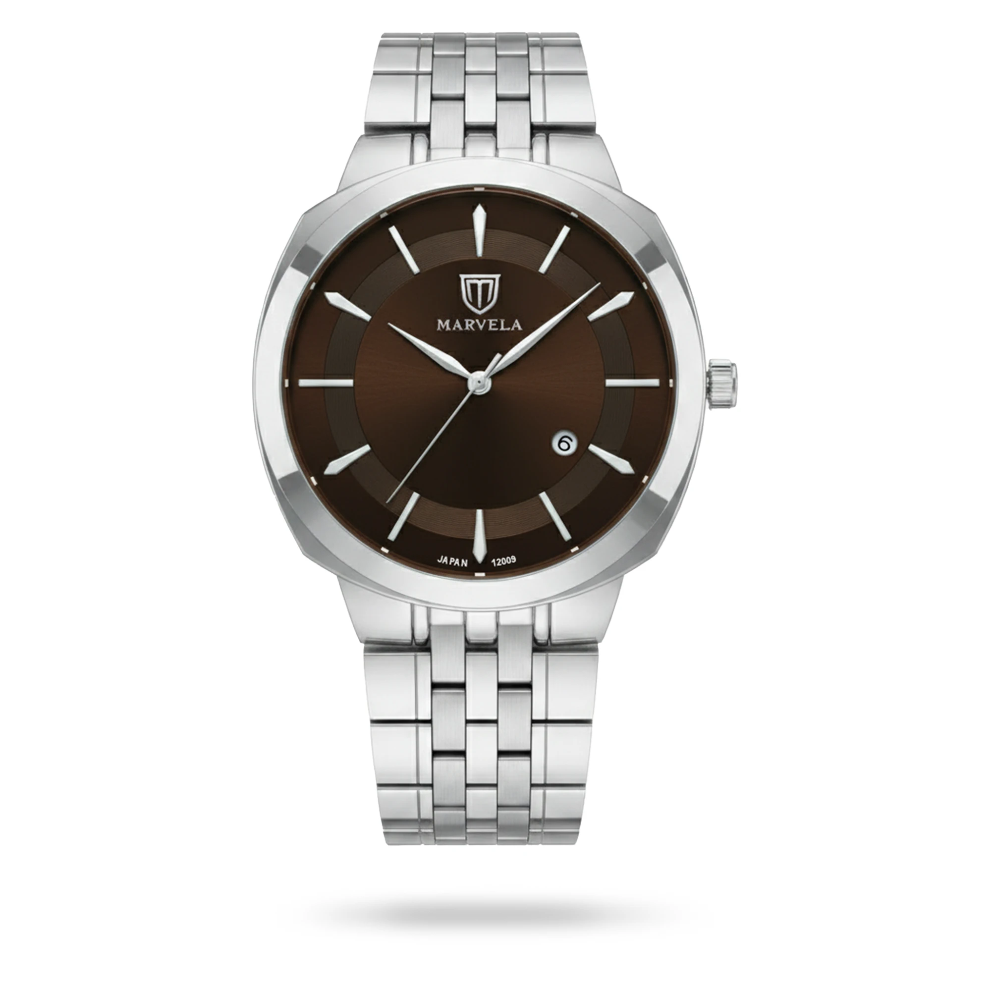 Marvela Watch For Men code MR12009G-0102 ,a beautiful wrist watch with 12009 Reference, is a Classic watch which has a Metallic Strap, gives you an unique style. This watch has a Steel case, Steel strap and a Brown dial which has created a beautiful color combination.