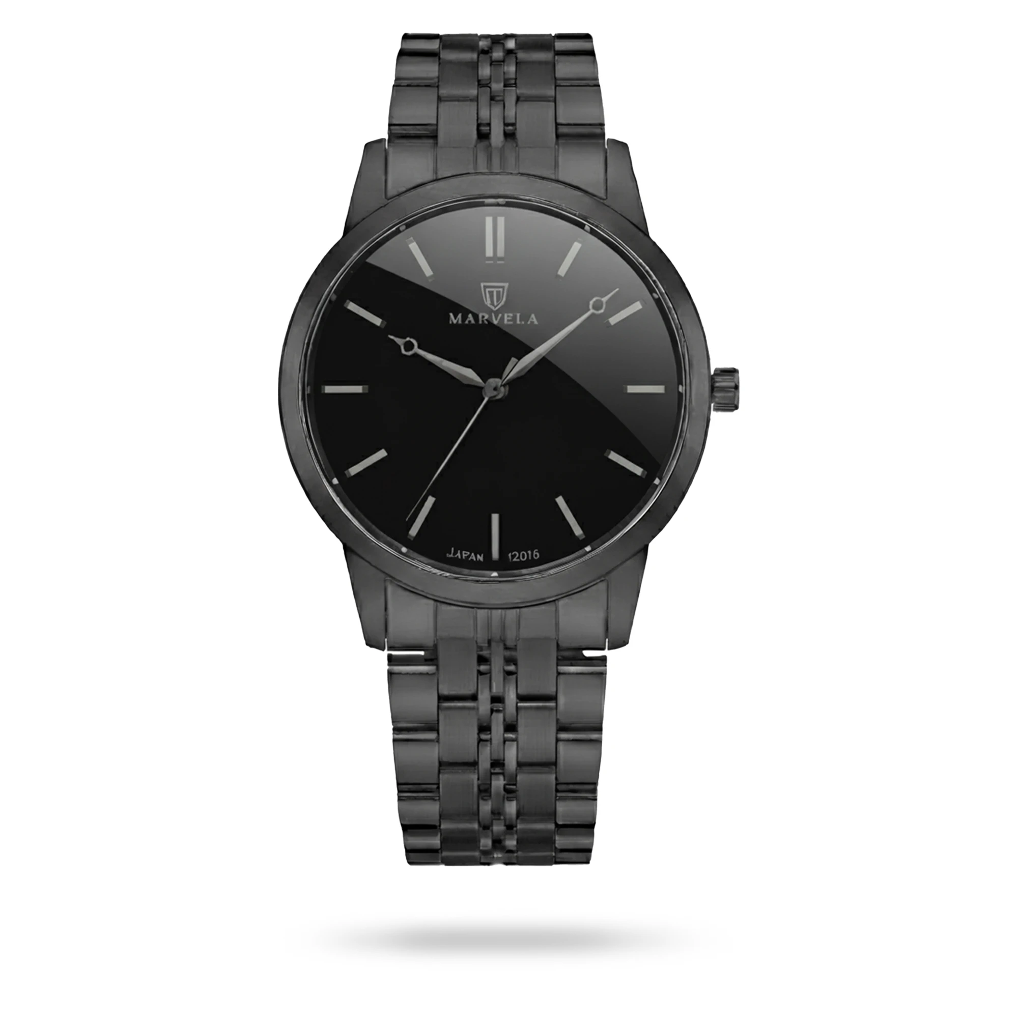Marvela Watch For Men code MR12016G-0014 ,a beautiful wrist watch with 12016 Reference, is a Classic watch which has a Metallic Strap, gives you an unique style. This watch has a Black case, Black strap and a Black dial which has created a beautiful color combination.