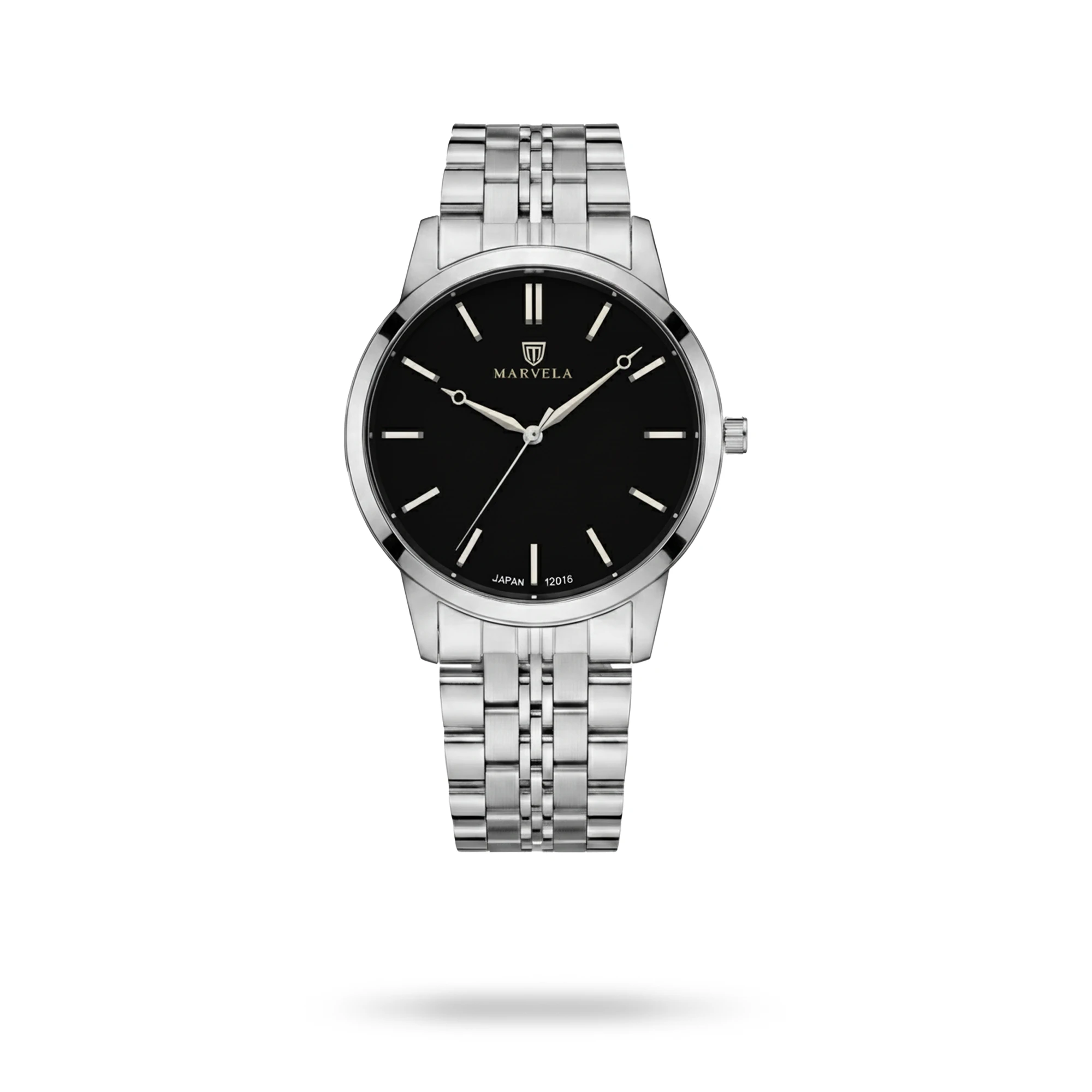 Marvela Watch For Women code MR12016L-0005 ,a beautiful wrist watch with 12016 Reference, is a Classic watch which has a Metallic Strap, gives you an unique style. This watch has a Steel case, Steel strap and a Black dial which has created a beautiful color combination.