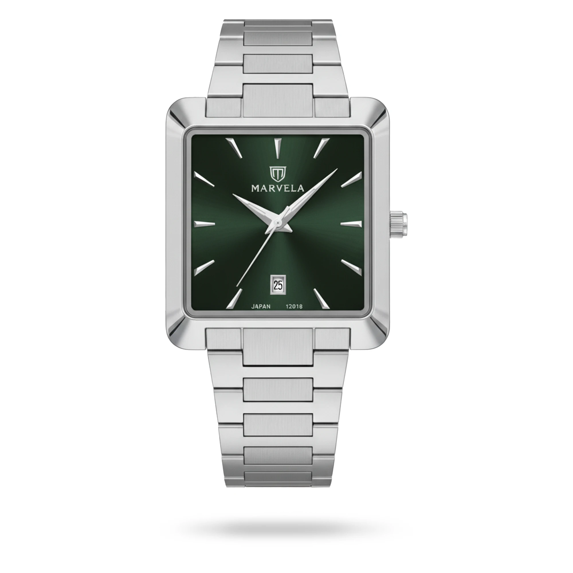 Marvela Watch For Men code MR12018G-0009 ,a beautiful wrist watch with 12018 Reference, is a Classic watch which has a Metallic Strap, gives you an unique style. This watch has a Steel case, Steel strap and a Green dial which has created a beautiful color combination.