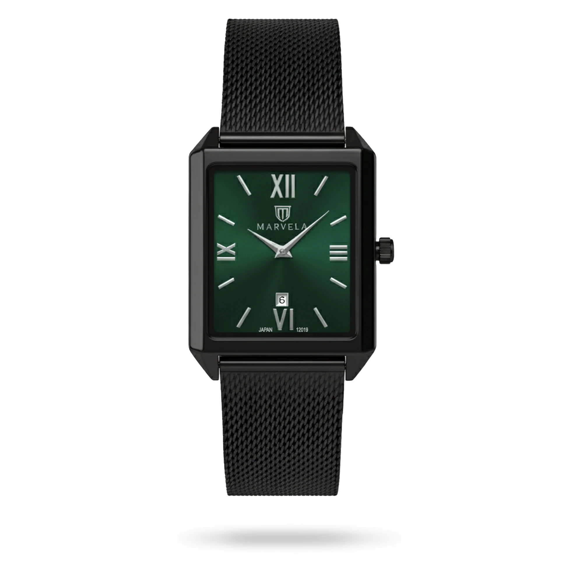 Marvela Watch For Men code MR12019G-0017 ,a beautiful wrist watch with 12019 Reference, is a Classic watch which has a Straw Strap, gives you an unique style. This watch has a Black case, Black strap and a Green dial which has created a beautiful color combination.