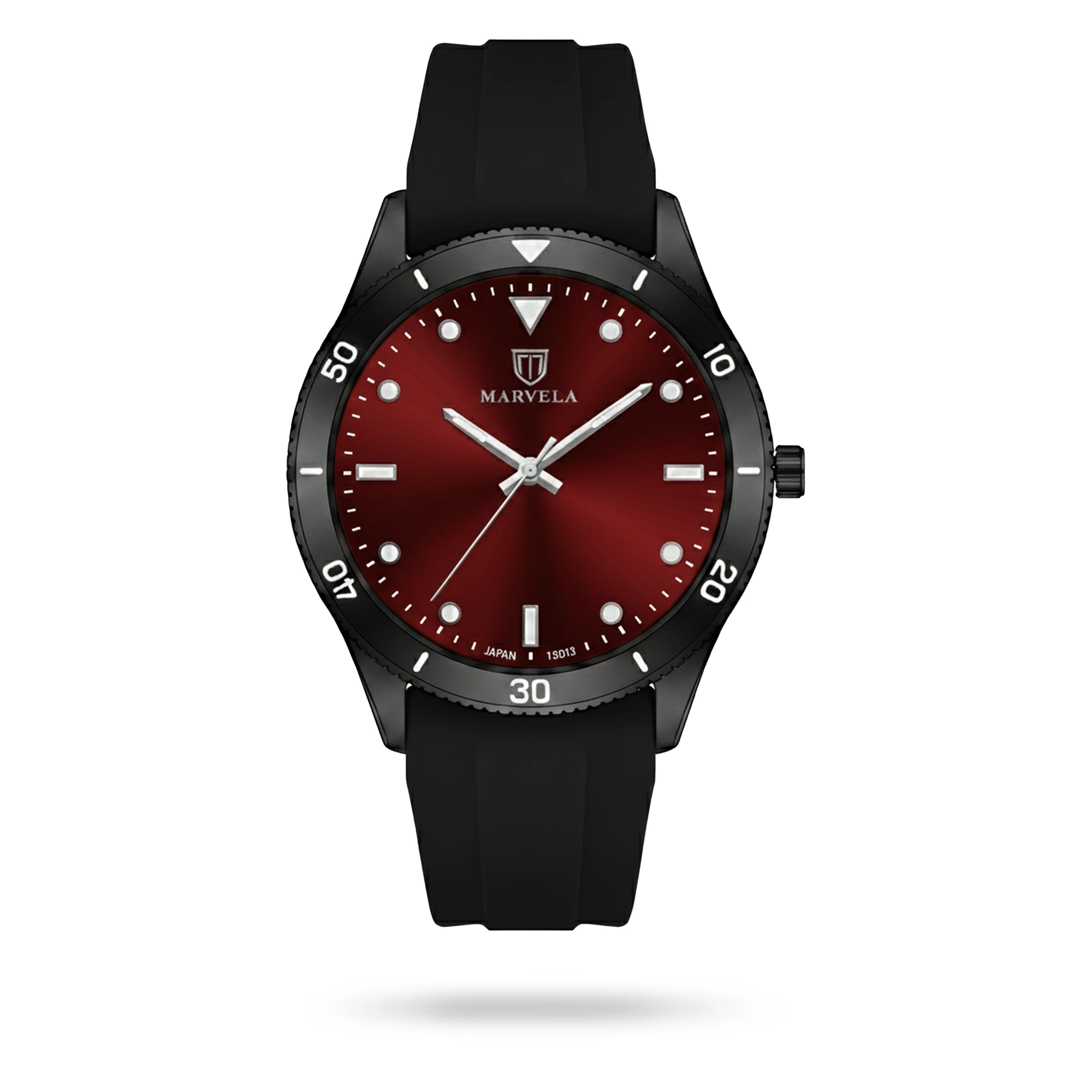 Marvela Watch For Men code MR13011G-0015 ,a beautiful wrist watch with 13011 Reference, is a Sport watch which has a Rubber Strap, gives you an unique style. This watch has a Black case, Black strap and a Red dial which has created a beautiful color combination.