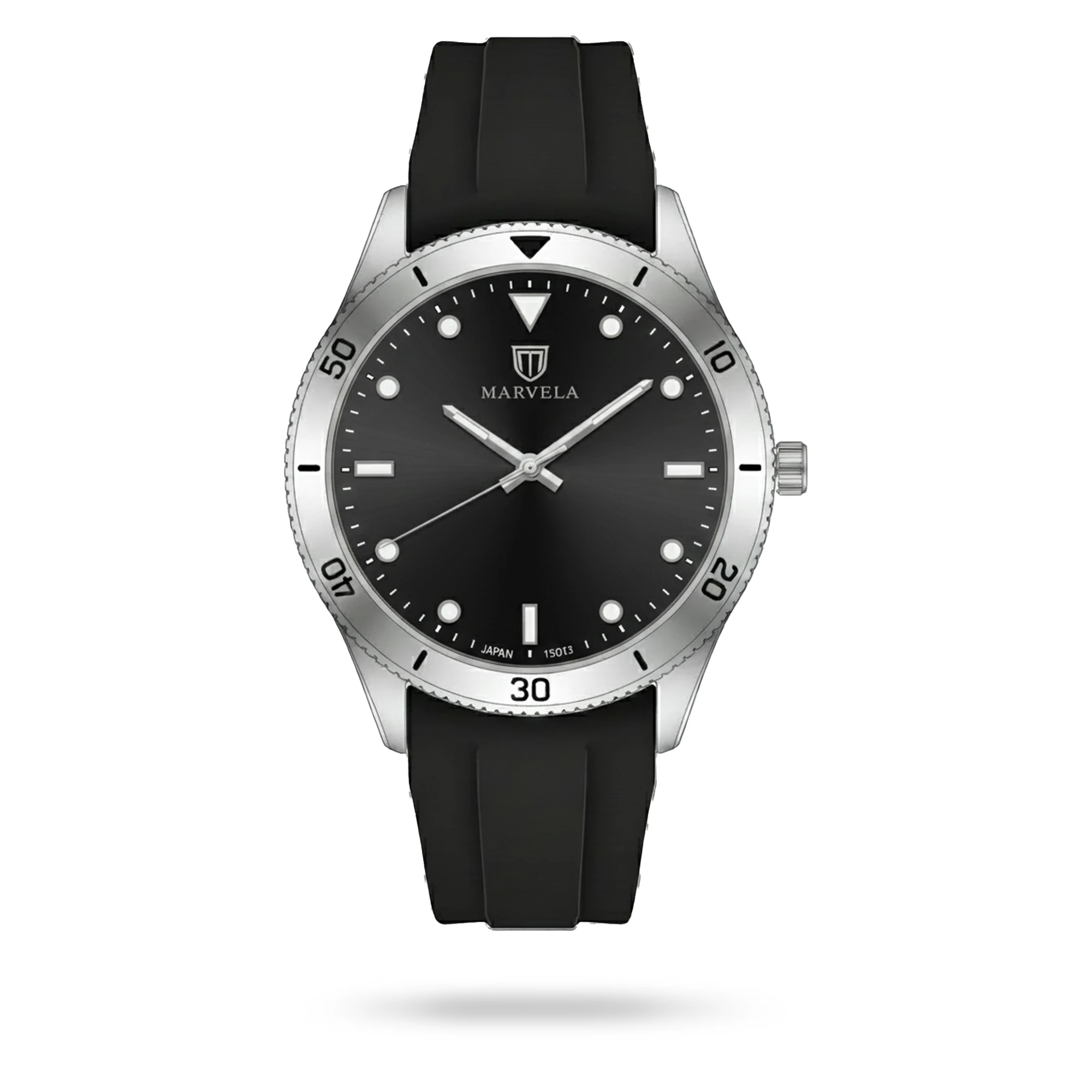 Marvela Watch For Men code MR13011G-0031 ,a beautiful wrist watch with 13011 Reference, is a Sport watch which has a Rubber Strap, gives you an unique style. This watch has a Steel case, Black strap and a Black dial which has created a beautiful color combination.