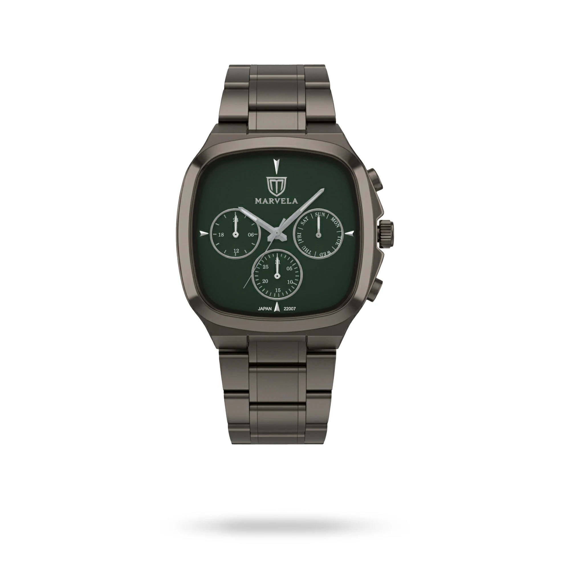 Marvela Watch For Women code MR22007L-0012 ,a beautiful wrist watch with 22007 Reference, is a Chronograph watch which has a Metallic Strap, gives you an unique style. This watch has a Smoke case, Smoke strap and a Green dial which has created a beautiful color combination.