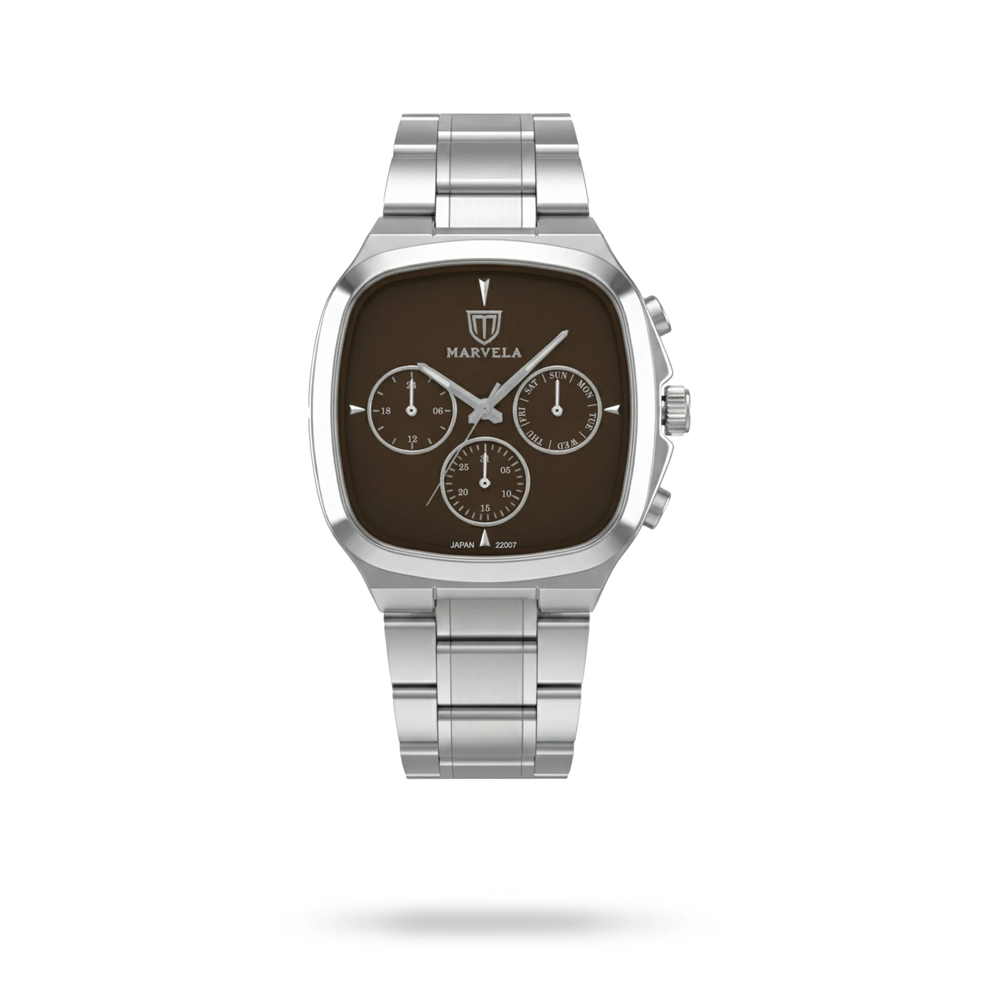 Tags: 22007 Reference, Brown Dial, Chronograph Watch, Metallic Strap, Steel Case, Steel Strap