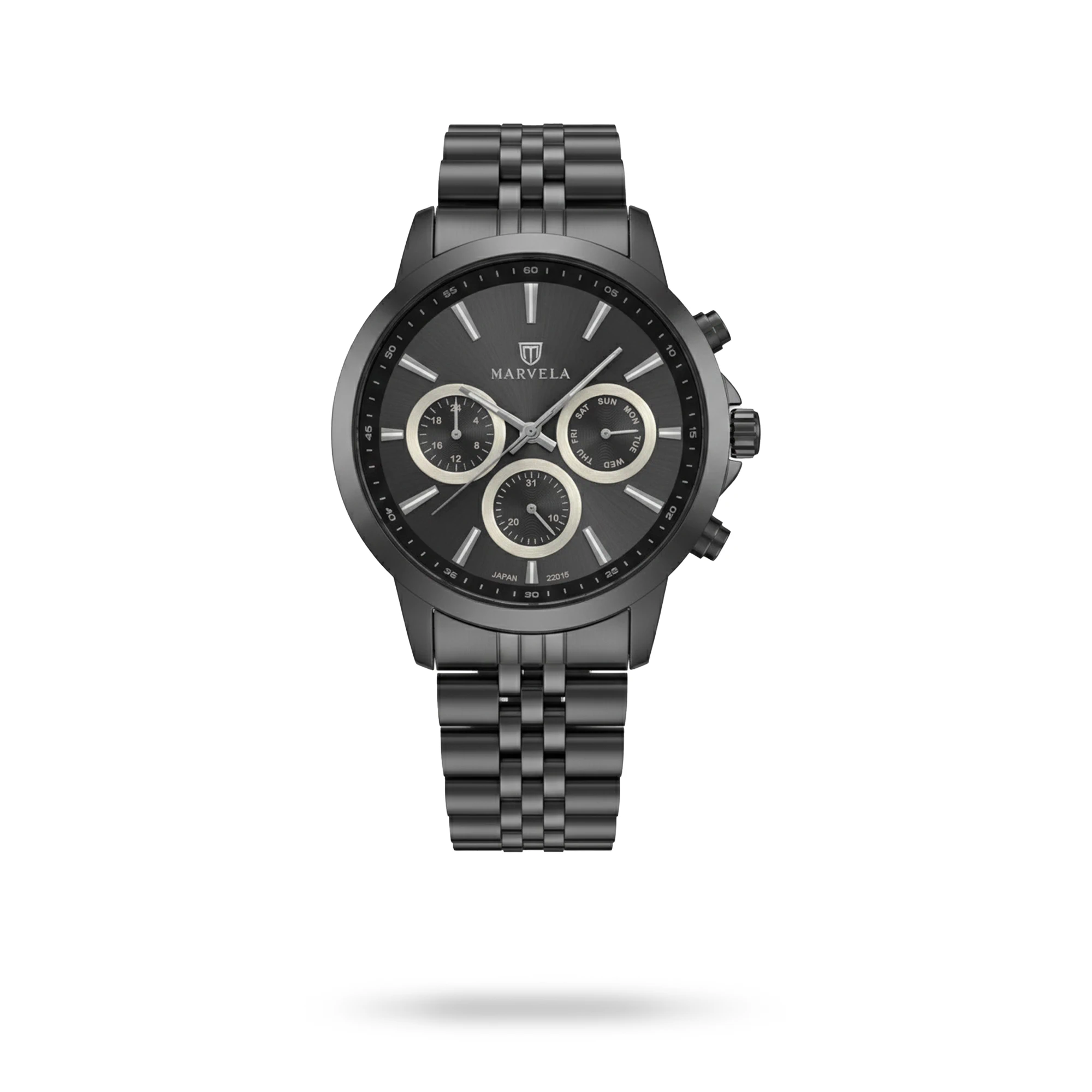 Marvela Watch For Women code MR22015L-0024 ,a beautiful wrist watch with 22015 Reference, is a Chronograph watch which has a Metallic Strap, gives you an unique style. This watch has a Smoke case, Smoke strap and a Smoke dial which has created a beautiful color combination.